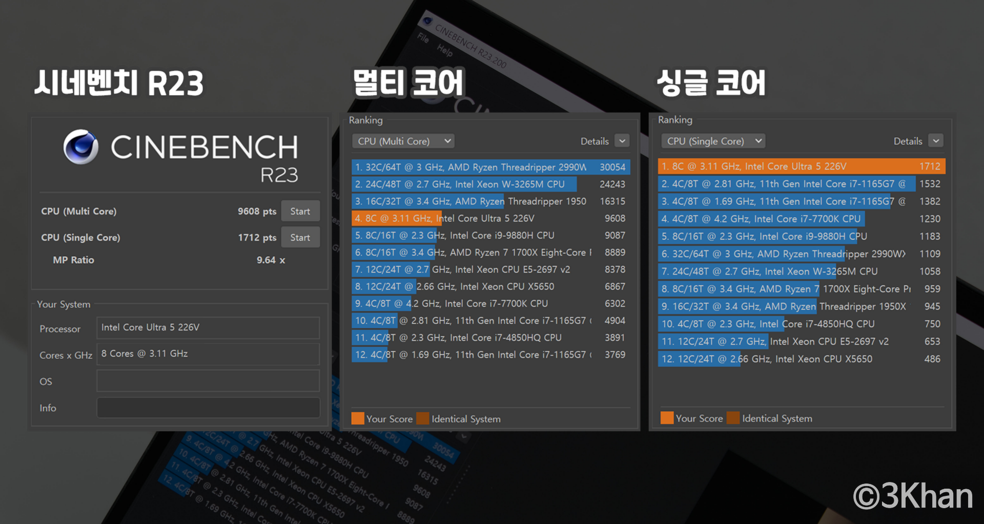 확실히 코어 울트라부터 싱글코어 성능이 개선되어 과거보다는 확실히 조건이 나은데요.