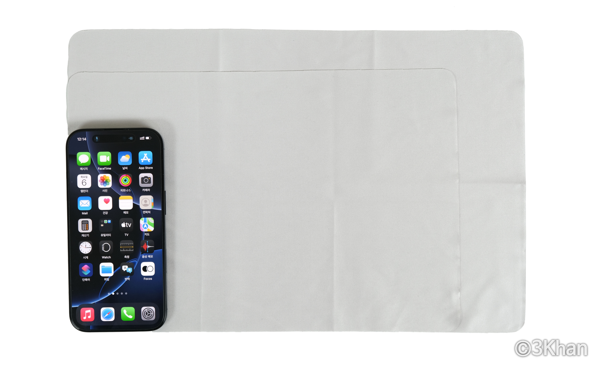 16인치 사이즈의 천의 경우 아이폰 16 프로와 비교하면 대략 이 정도 사이즈입니다.