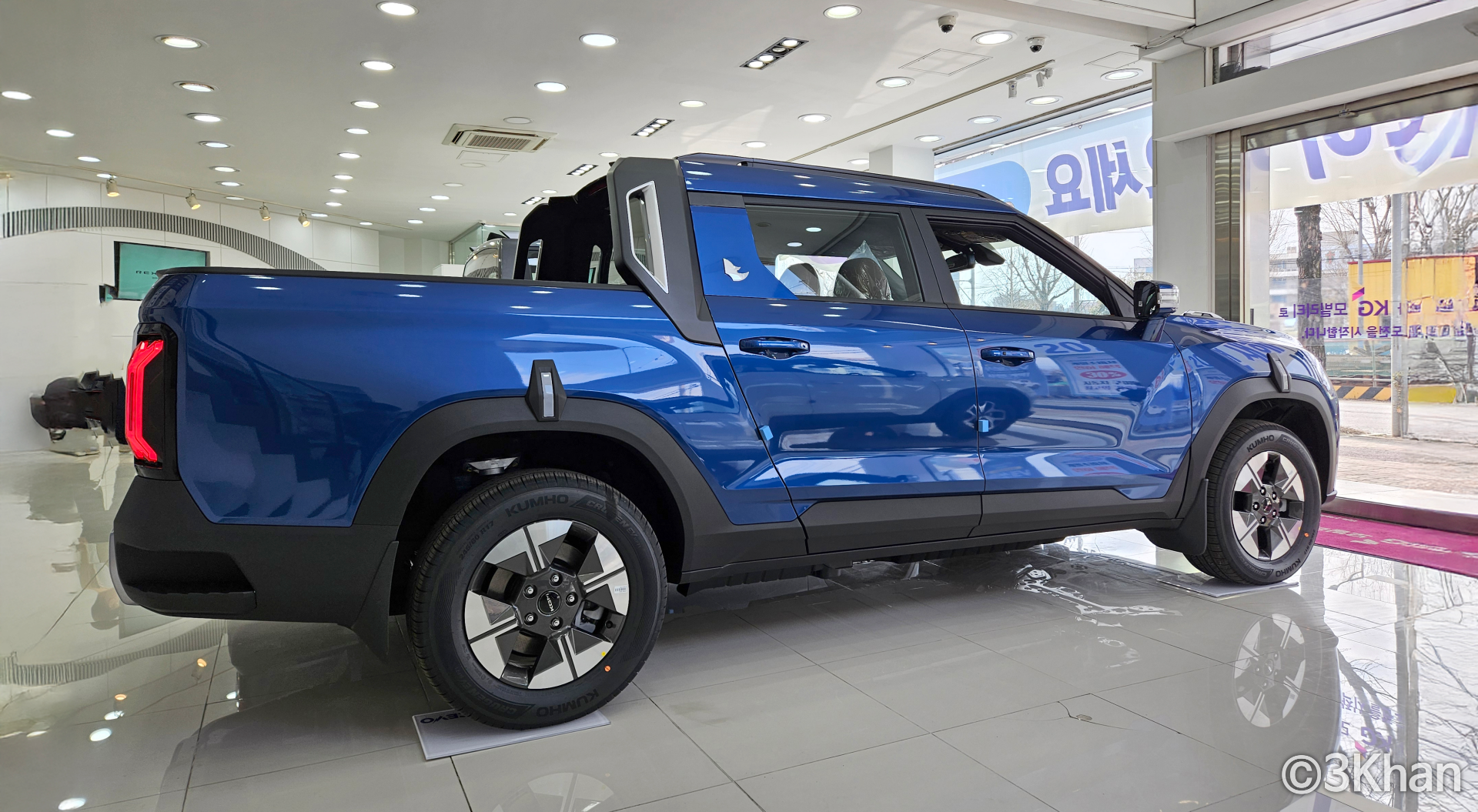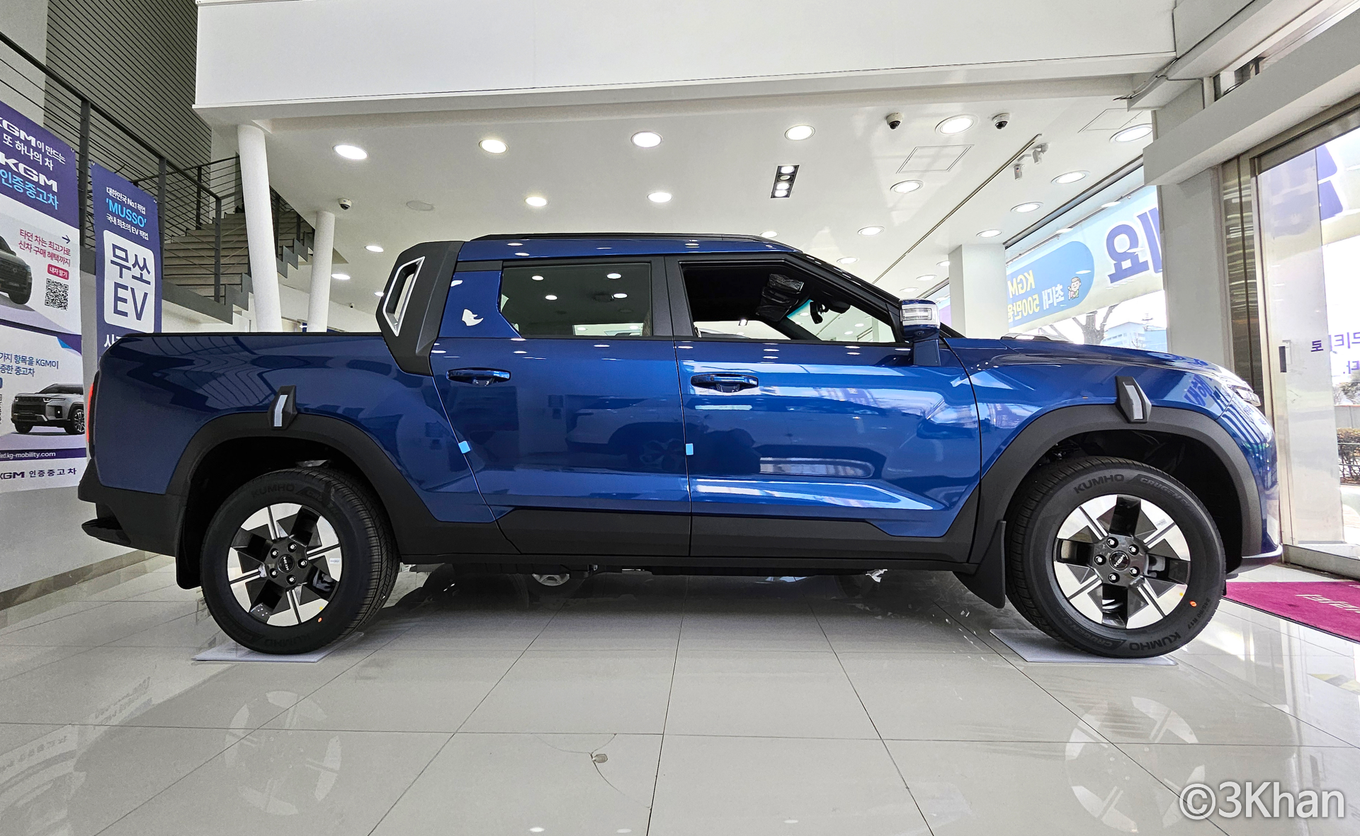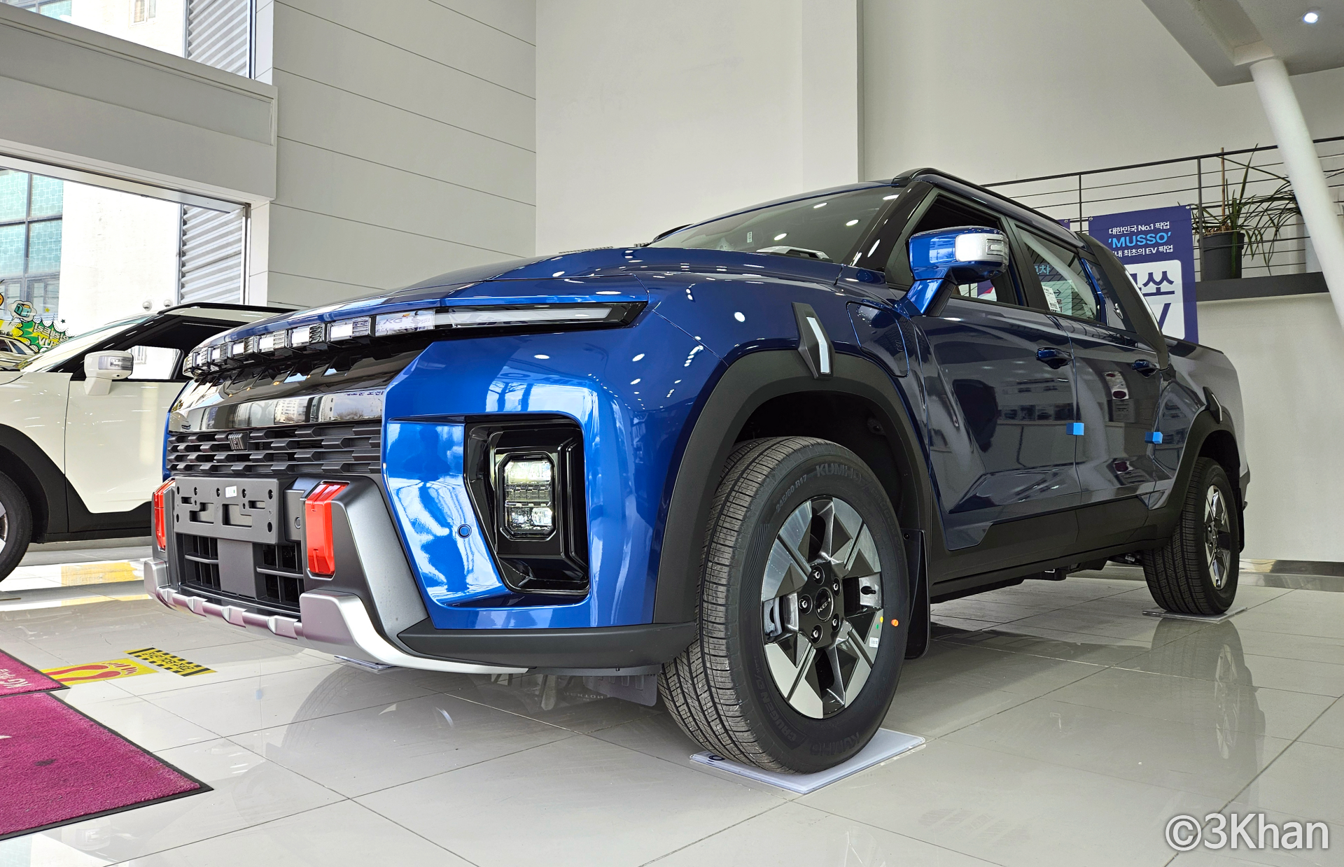 마린 블루 컬러의 KGM 무쏘 EV 전시차가 딱 들어와서 구경해 보고 왔습니다.