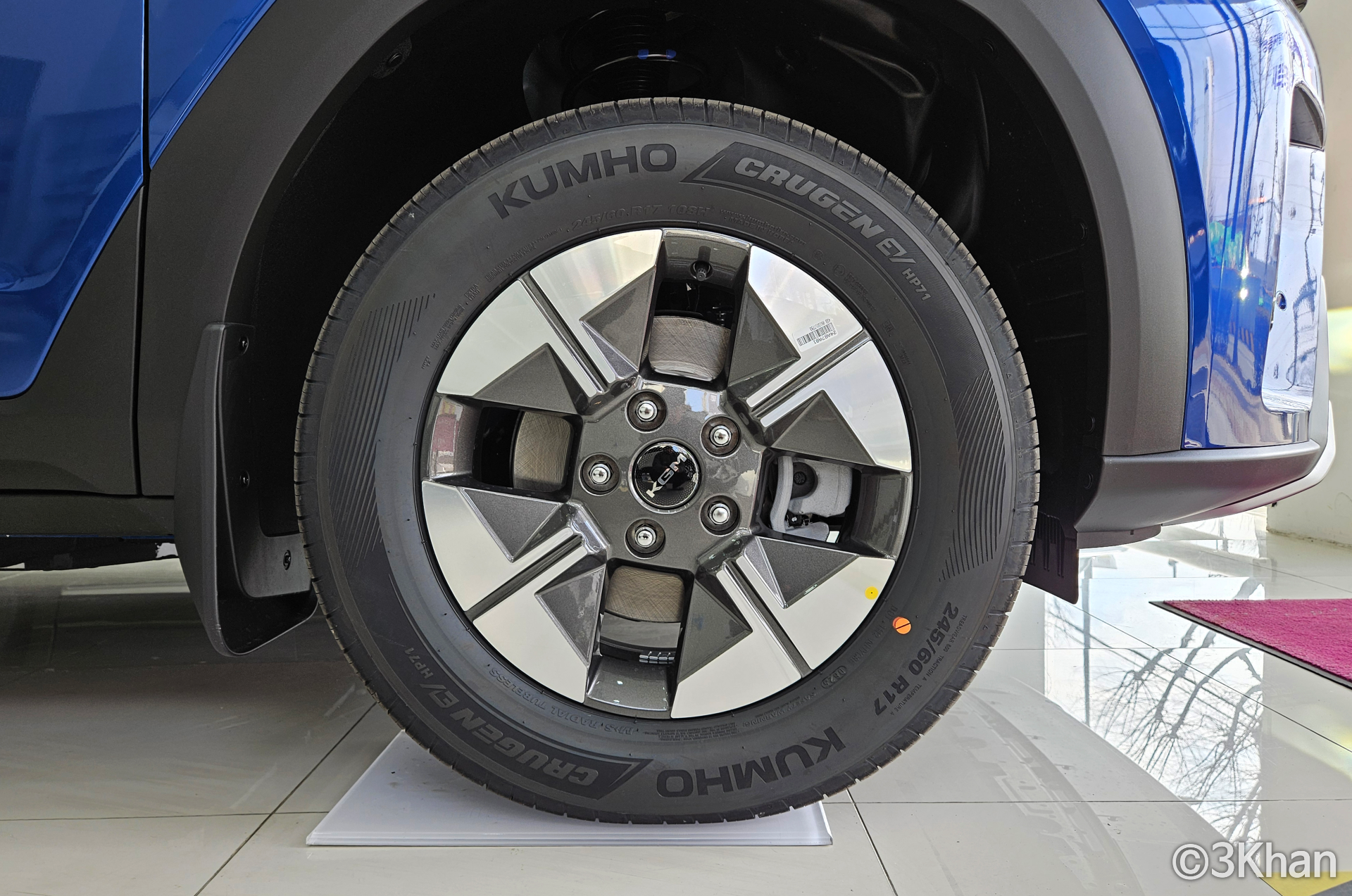 무쏘 EV 타이어는 17인치 휠에 금호 크루젠 EV를 채용했는데요.