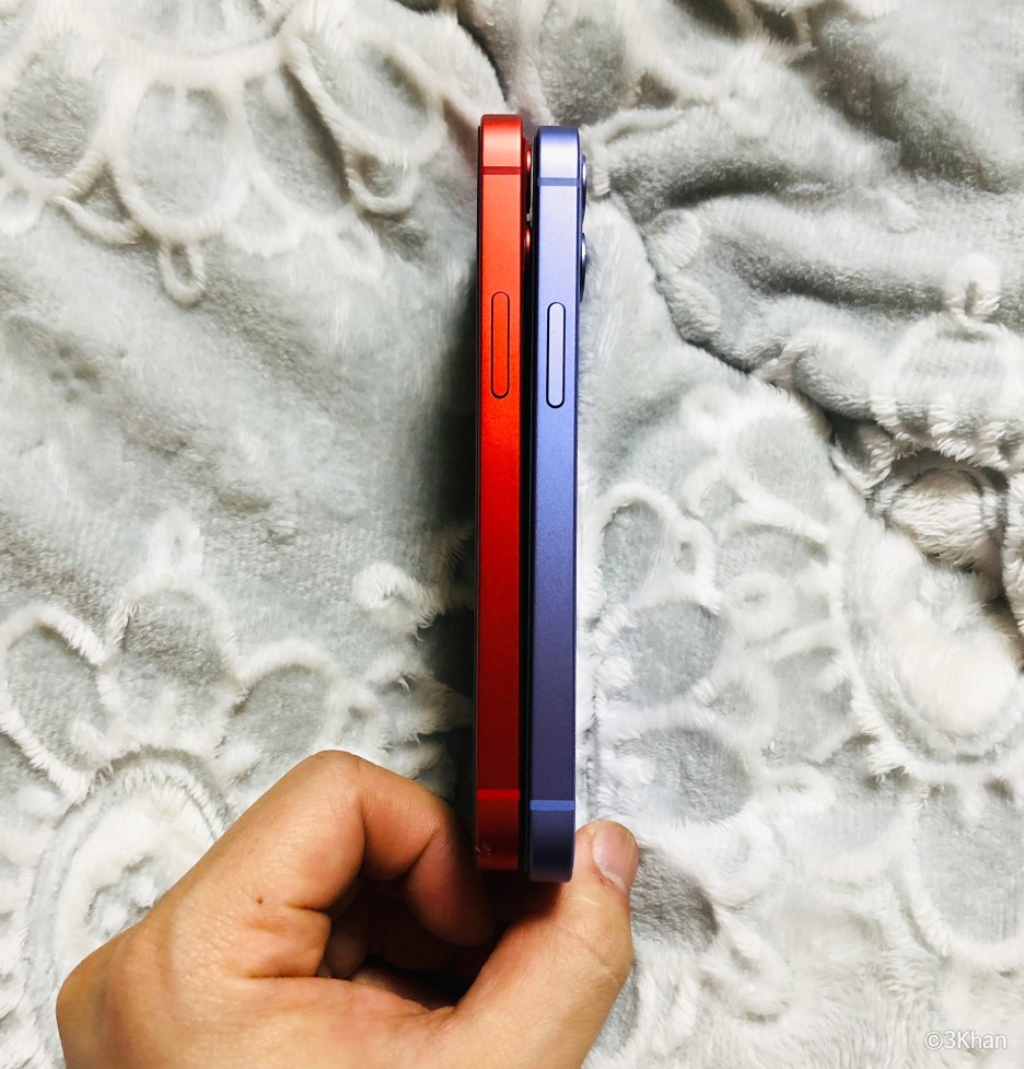 레드의 경우 실물과 사진 색상이 조금 다른 편이긴한데, 대략 12미니 레드와 퍼플 비교 샷 입니다.